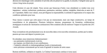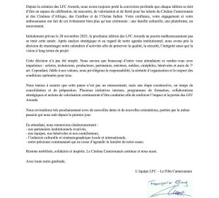 LFC AWARDS ACTE 8 : L’ASSOCIATION LE FILM CAMEROUNAIS ANNONCE LE REPORT DE L’ÉDITION 2025